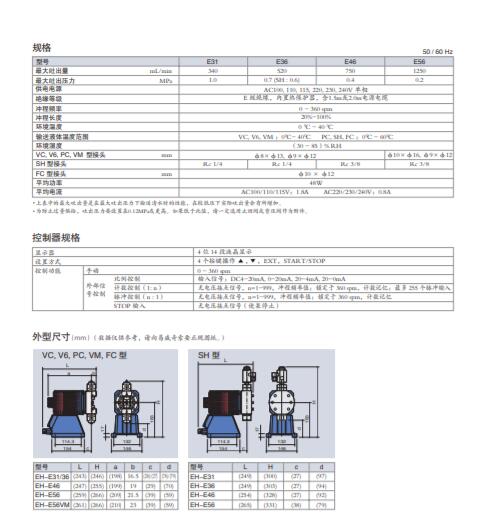 日本易威奇(Iwaki)計量泵電磁泵EH-E系列EH-E36VC-20EE11帶外部脈沖信號控制自動調節流量