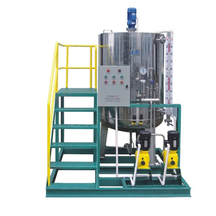 加藥裝置根據所需藥劑濃度,在攪拌箱內配置,經攪拌器攪拌均勻后投入溶液箱、用計量泵向投藥點或指定系統中輸送所配制的溶液。成套加藥裝置具有結構緊湊、安全簡單、操作使用簡便等特點。加藥裝置還可根據用戶不同工藝流程的要求,進行有針對性的設計、配置必要的部件,實現自動遠程控制等功能。