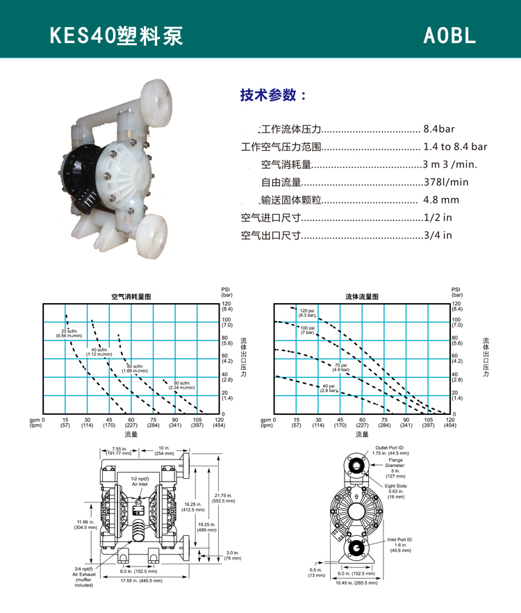 AOBL氣動隔膜泵KES40系列工程塑料泵耐磨材質膜片可選氣動泵