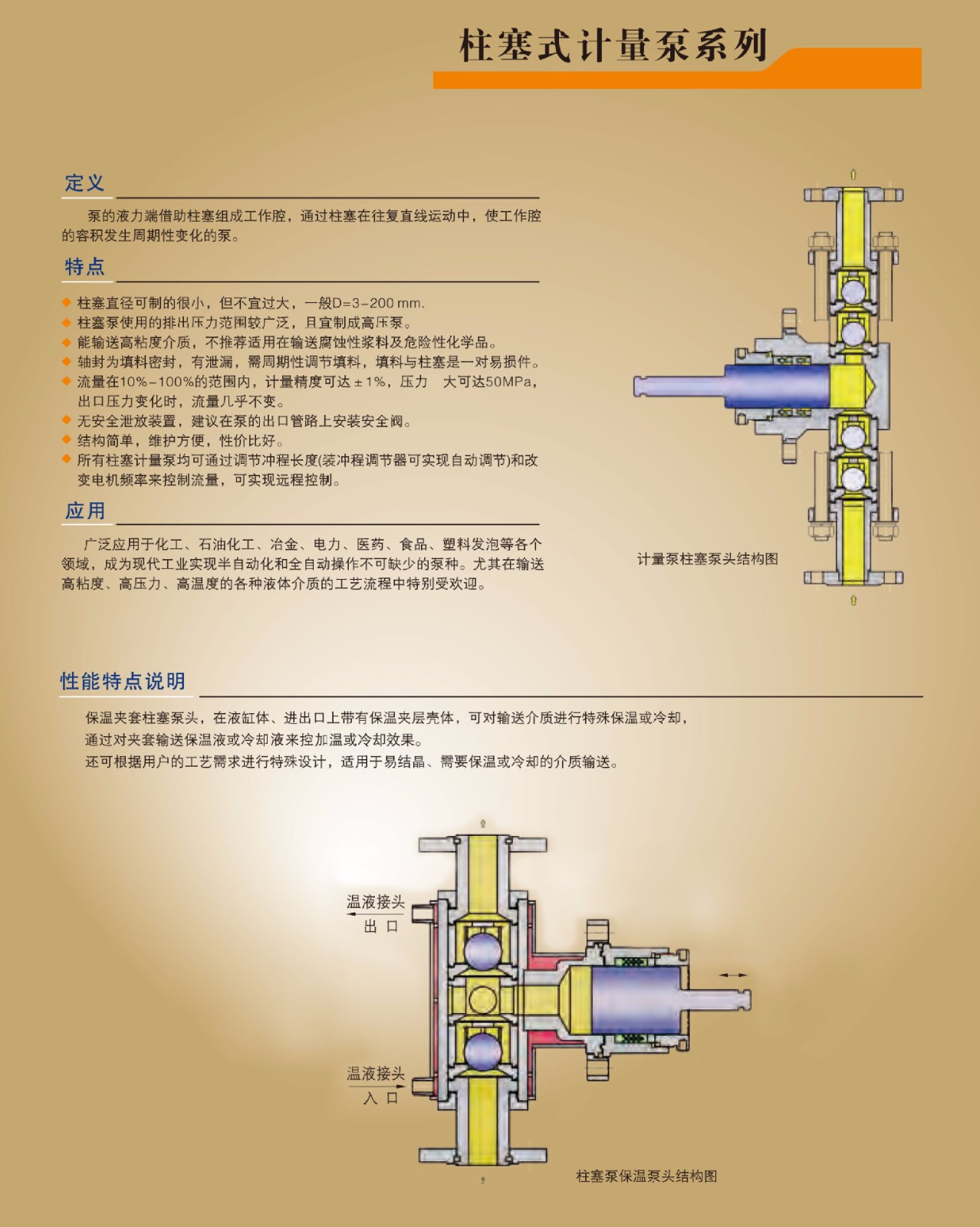 10、可根據工藝要求,泵頭可制成保溫、冷卻夾套型和電加熱型等多種特殊設計。