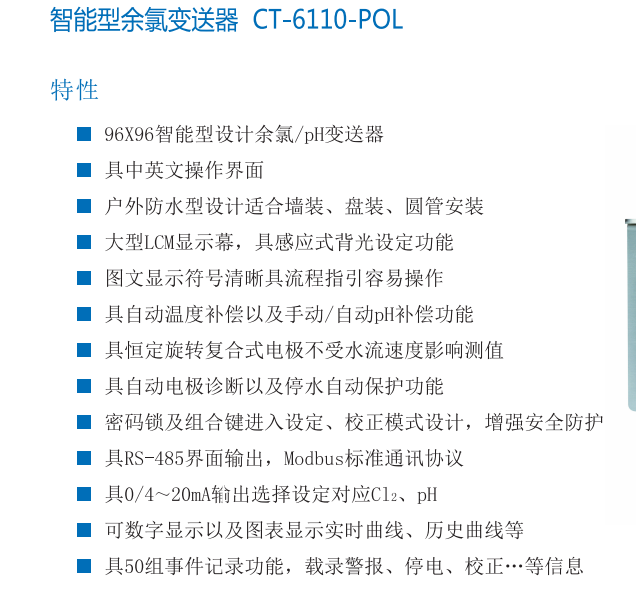 智能型余氯變送器 CT-6110-POL