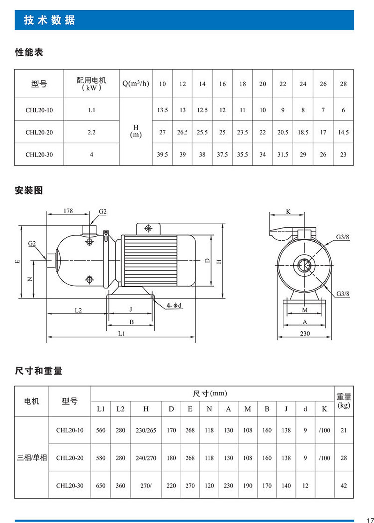 南方離心CHL20系列型號參數(shù)如下: