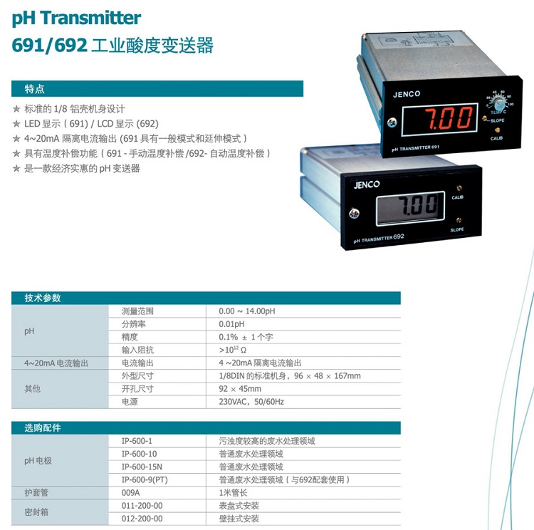 l 具有溫度補(bǔ)償功能(691-手動(dòng)溫度補(bǔ)償/692-自動(dòng)溫度補(bǔ)償)