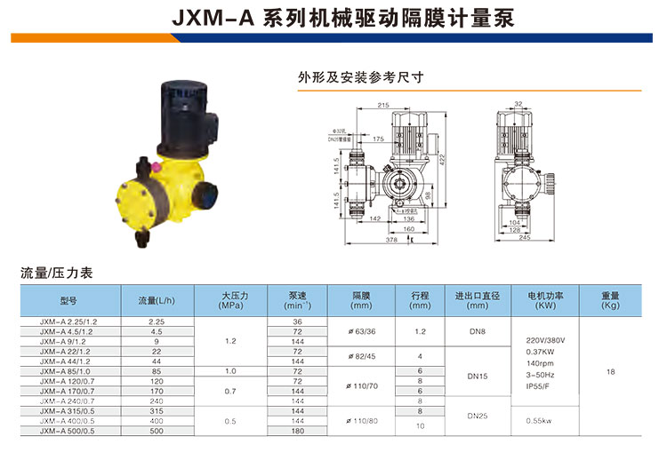 愛(ài)力浦計(jì)量泵JXM-A型高精度機(jī)械驅(qū)動(dòng)隔膜泵定量加藥泵