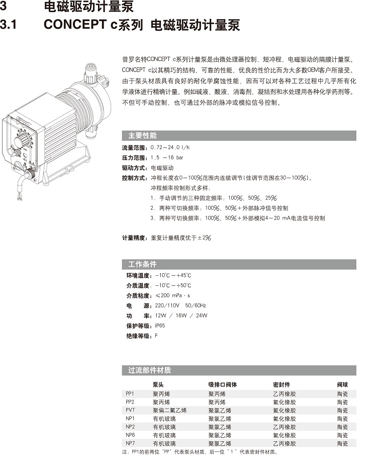 Prominent電磁計量泵 普羅名特耐腐蝕CONC1603型加藥隔膜泵 PP泵頭污水泵