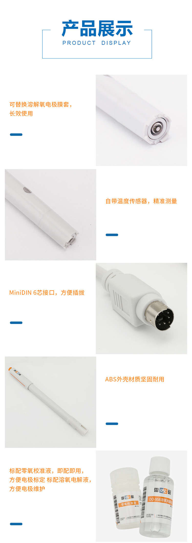雷磁溶解氧電極DO-958-L 實驗室電極傳感器探頭ABS外殼材質