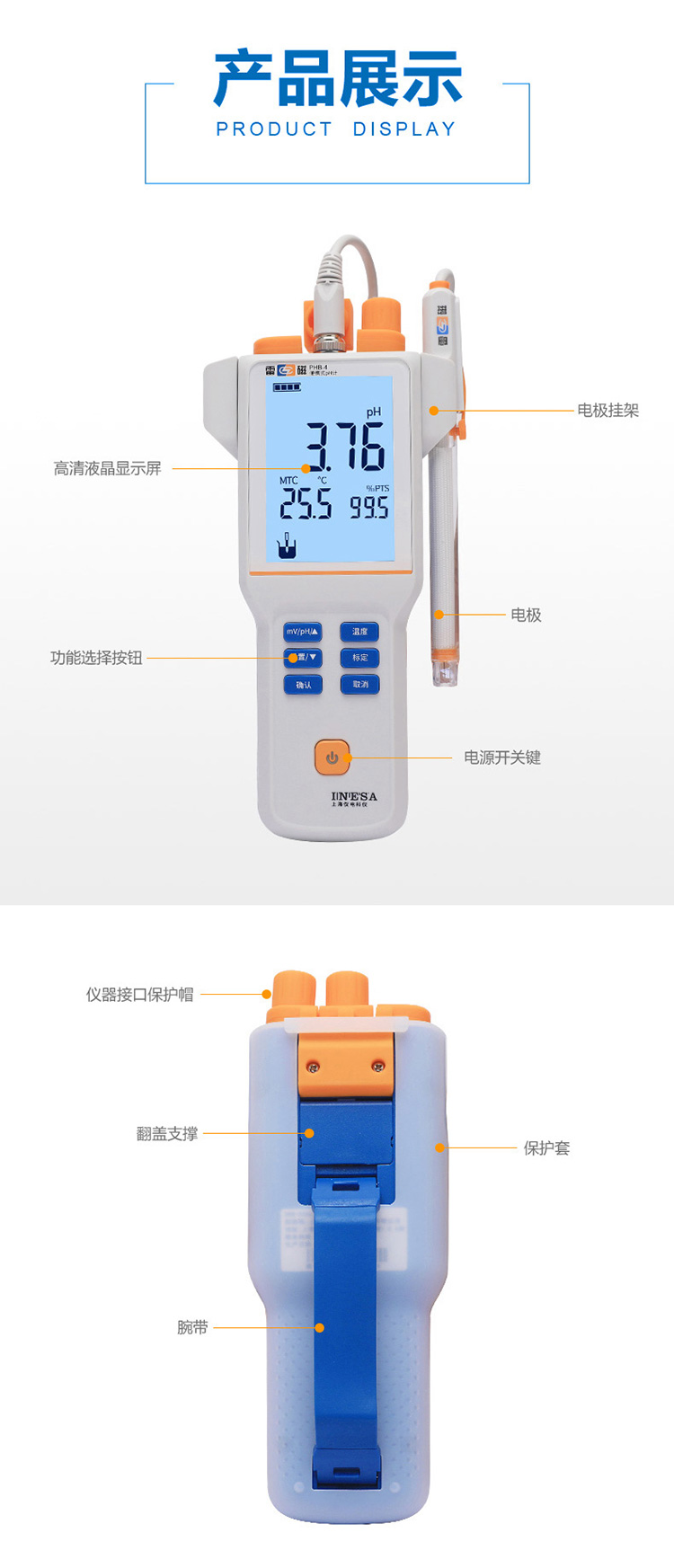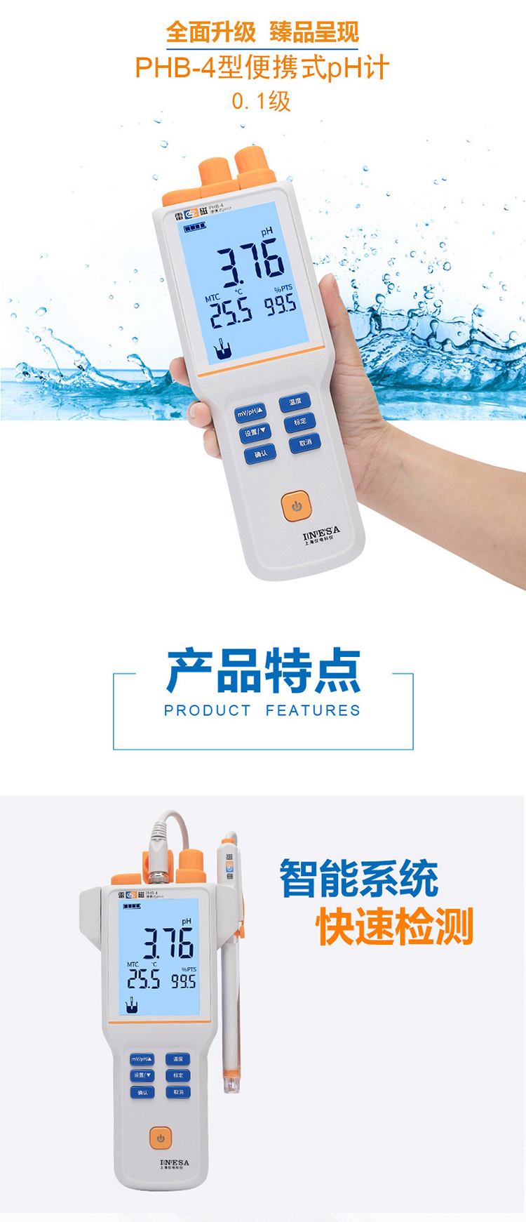 雷磁基礎款PHB-4型便攜式PH計標配套裝手動溫度補償液晶顯示