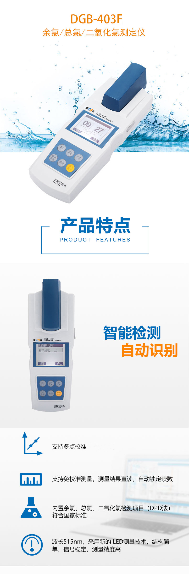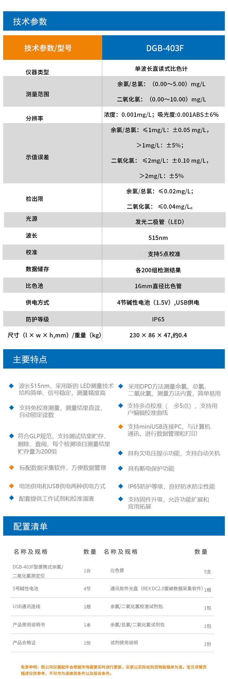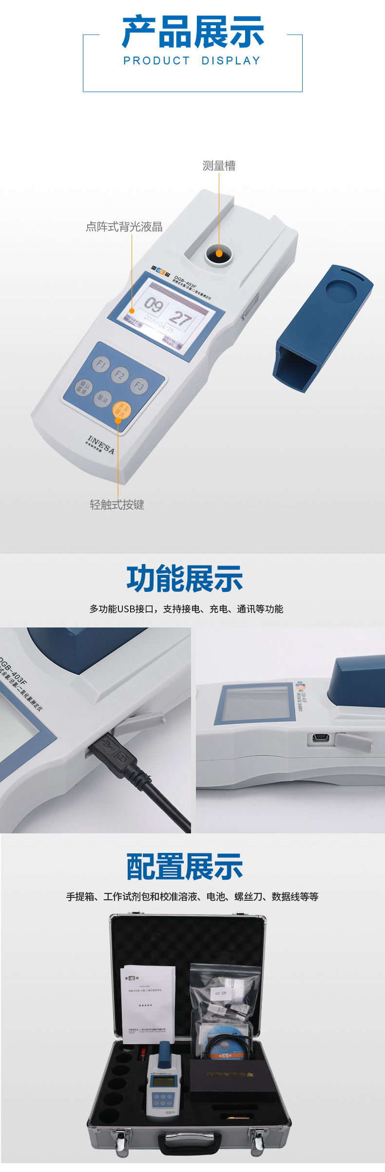 雷磁(leici)水質分析儀DGB-403F型便攜式余氯二氧化氯測定儀標配套裝