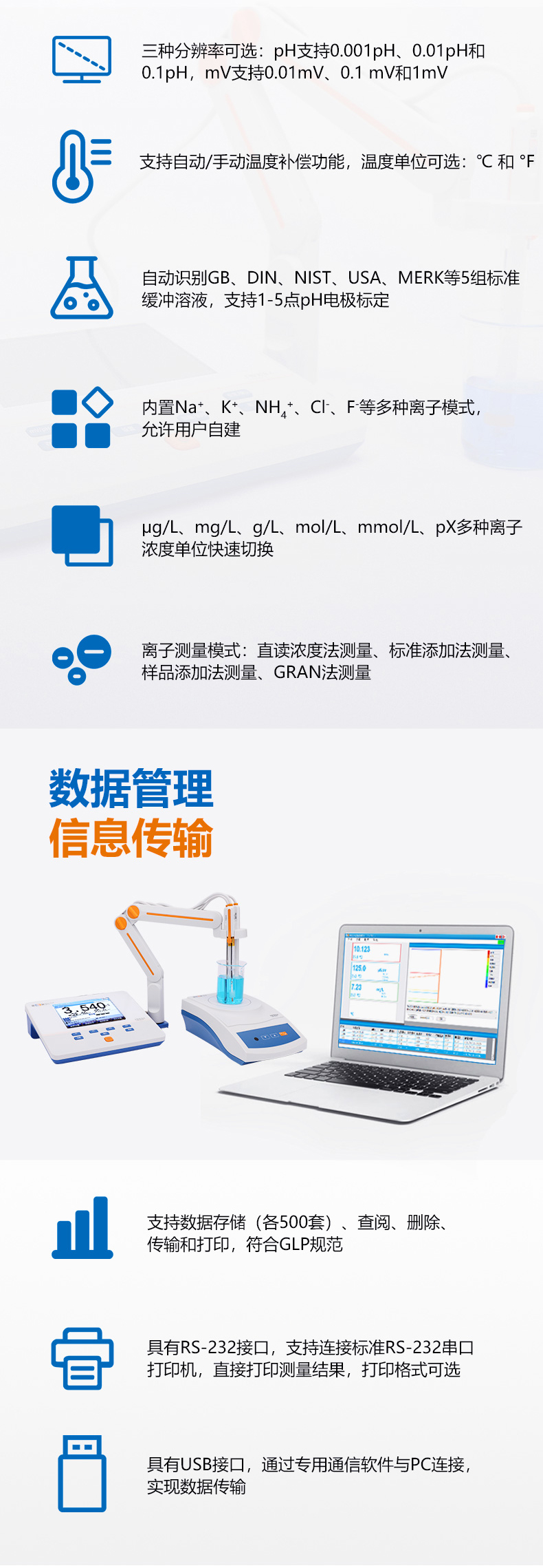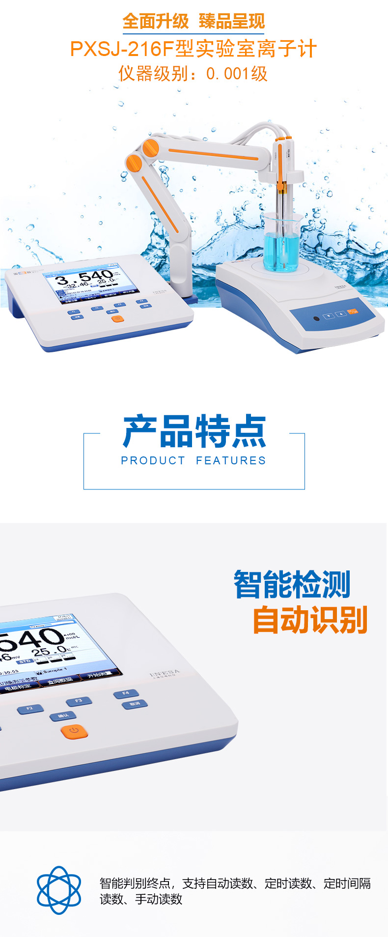 雷磁(leici)PXSJ-216F型離子計(jì)液晶屏幕自動手動溫度補(bǔ)償多種離子模式