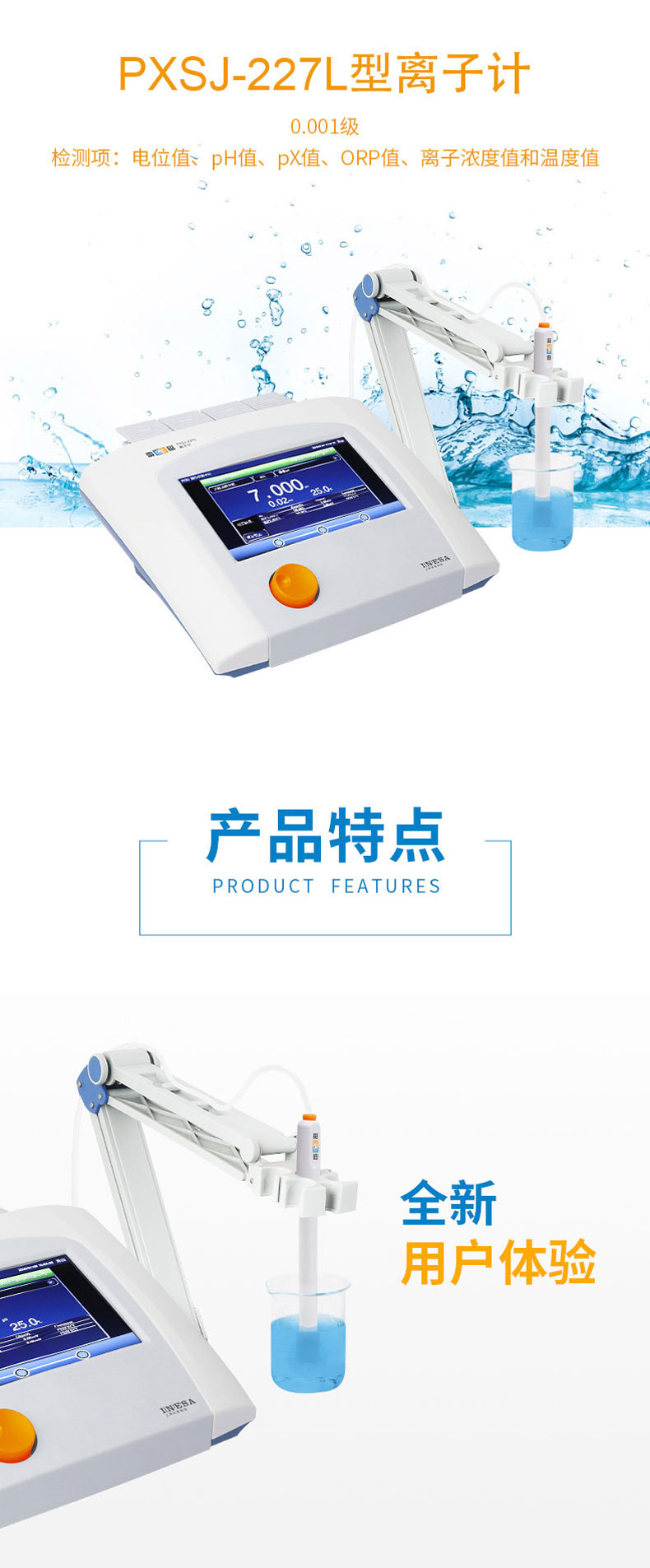 雷磁(leici)PXSJ-227L型離子計水質(zhì)分析儀液晶顯示屏中英文操作自動溫補