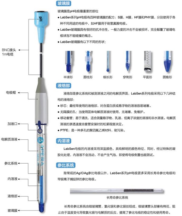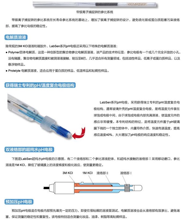 三信LabSen851-3粘稠樣品ph電極特點:預加壓電極參比系統;電解液持續穩定滲出,避免液接界堵塞。