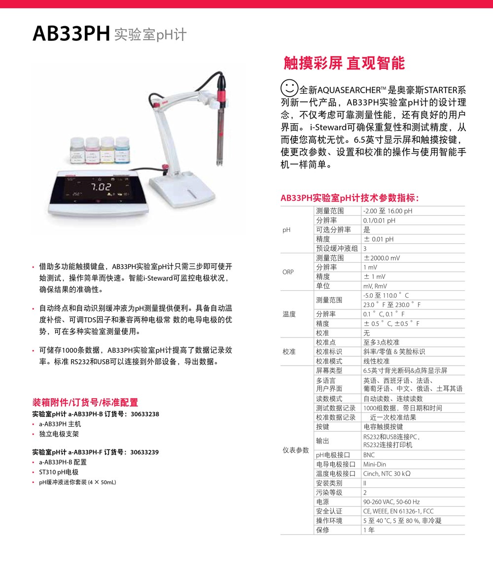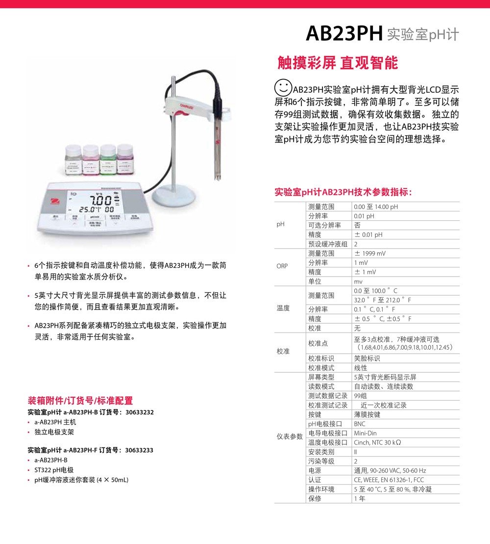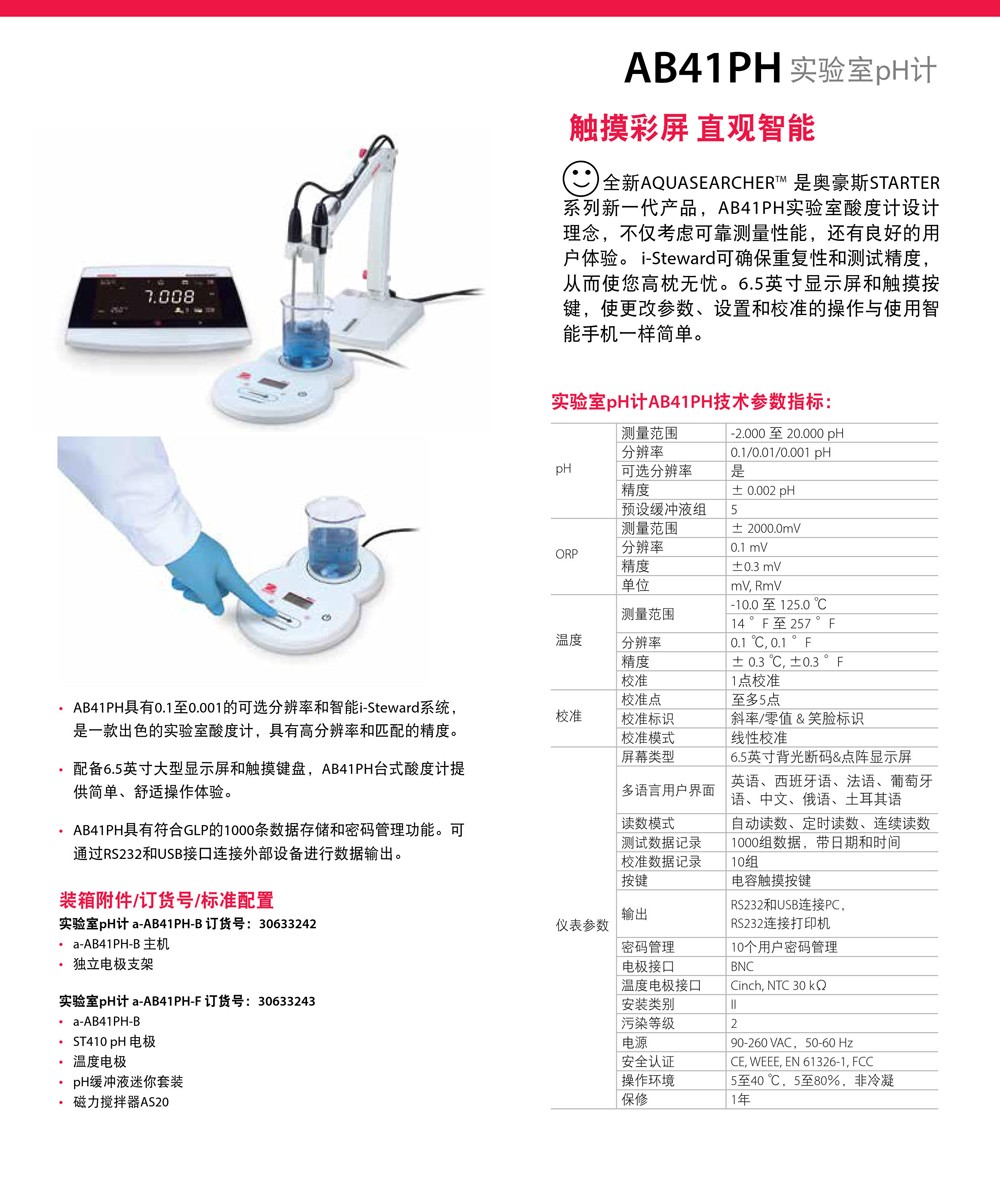 奧豪斯實驗室pH計AB41PH/AB33PH/AB23PH智能酸度計測試儀ph測定儀