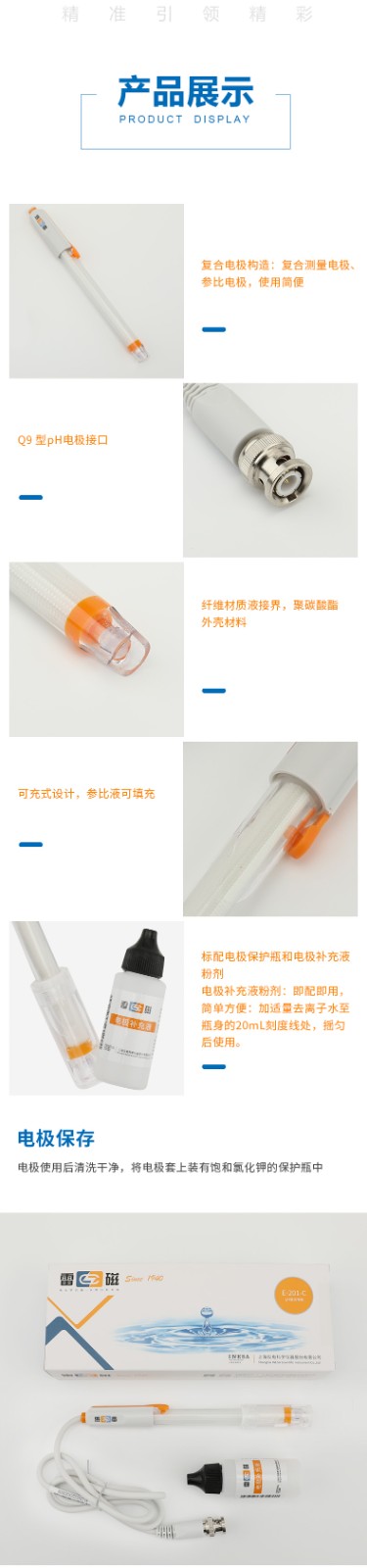 【雷磁】 實驗室pH復合電極E-201-C型