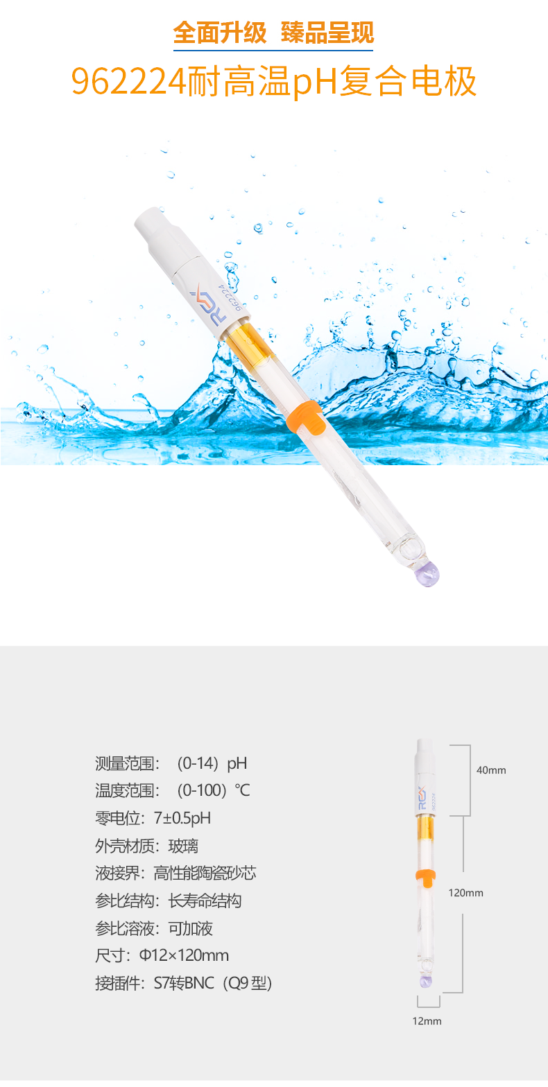 【雷磁】高端ph電極高精度 962224耐高溫ph復合電極