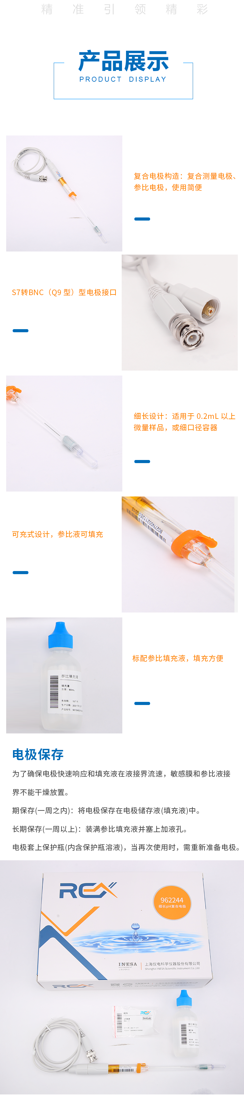 【雷磁】雷磁高端ph電極高精度 962244細長ph復合電極