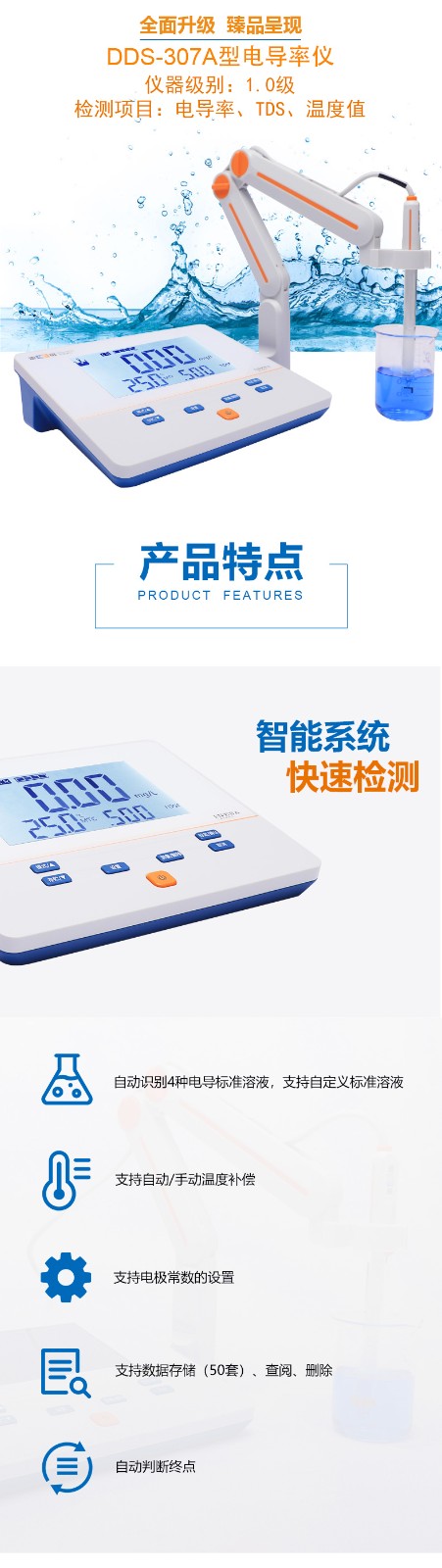 【雷磁】 臺式筆式實驗室電導率儀DDS-307A 自動溫補