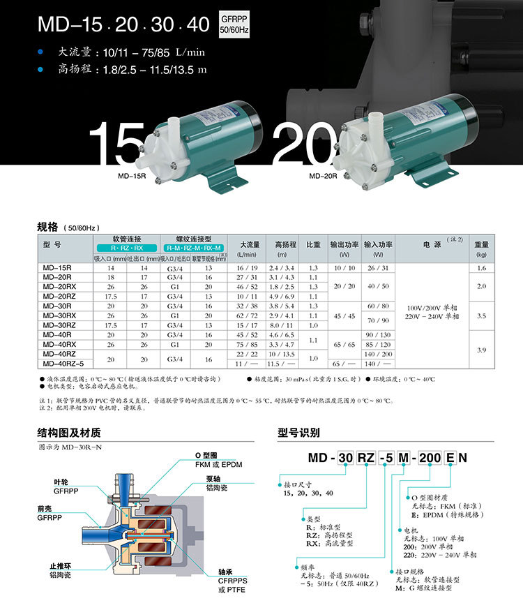 【IWAKI】易威奇磁力泵MD-70R過濾機循環水泵GFRPP材質小型磁力驅動泵