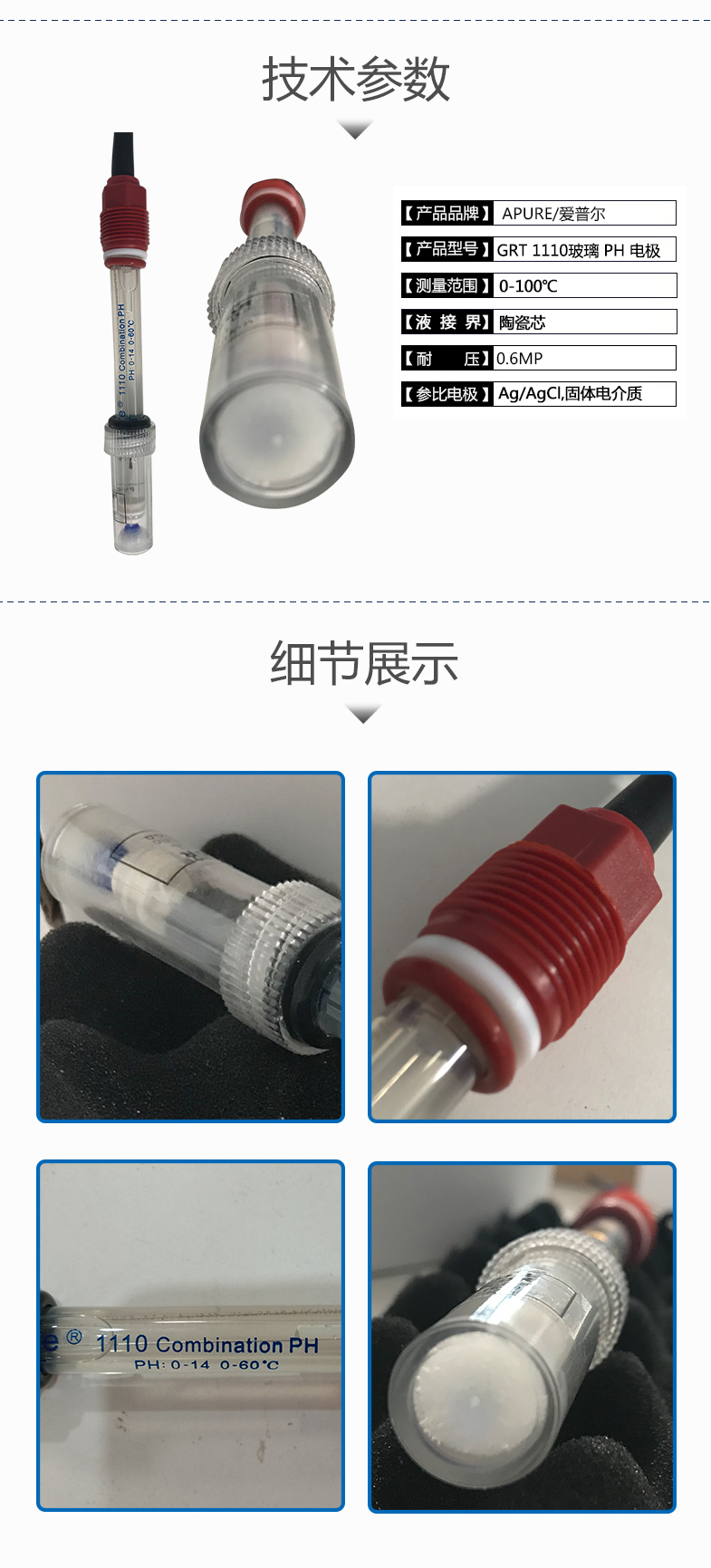 Apure愛普爾PH/ORP探頭GRT1110W在線玻璃PH計電極陶瓷芯ph探頭