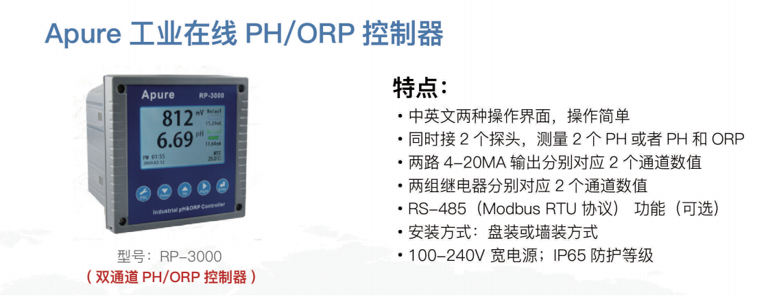 大表,彩屏,可同時(shí)測(cè)量PH和ORP的數(shù)值