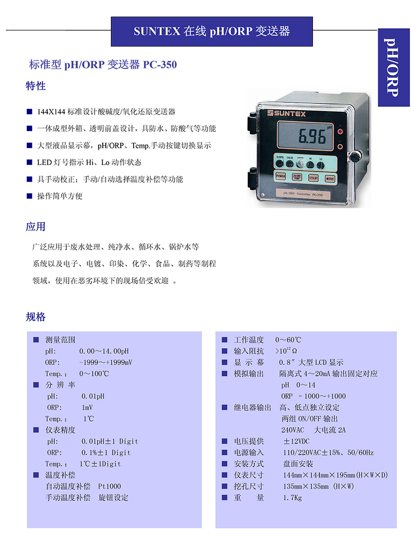 標(biāo)準(zhǔn)型 pH/ORP 變送器 PC-350